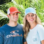 Adams Fairway Washed Cotton Twill Cap. 100% cotton twill front panel and contrast color stitching on visor with 100% polyester soft mesh back panels. 6 panel mid-crown structured cap. Matching color eyelets and contrast color self fabric sweatband with self fabric matching color undervisor. Matching back color end-on-end hook and loop closure.