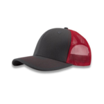 KC Caps 6 Panel Deluxe Fashion Truck Cap. 100% cotton twill with nylon mesh back. Buckram and pre-curved bill. Deluxe 4 needle sweatband. Poly snap closure.
