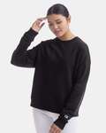 CHMPN LDY 9OZ 50/50 CREW Embroidered Champion “C” logo at left cuff 9 oz. 2x1 rib spandex at collar, cuffs and waistband Double-needle stitching throughout 50% Cotton/50% Polyester PowerBlend S-2XL Imported
